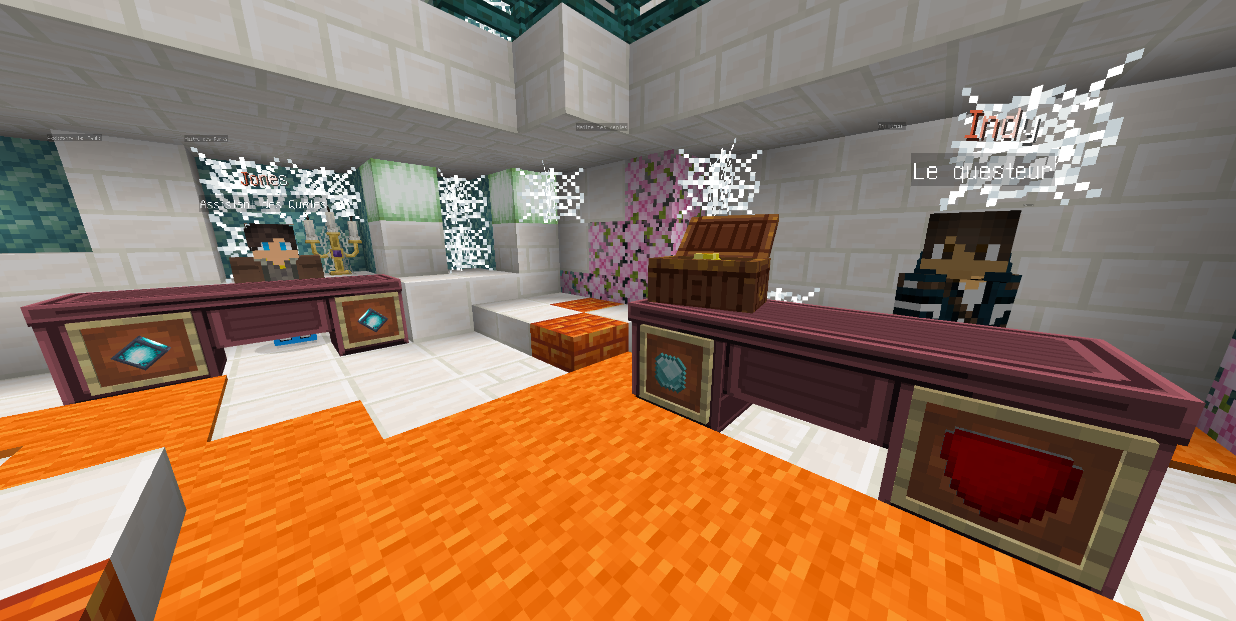 Le coeur d'Eden, tu y rencontre les PNJ essentiels, les coffres de votes... une table d'enchantement avec enclumes et meules sont à disposition : 58, 116, -238.